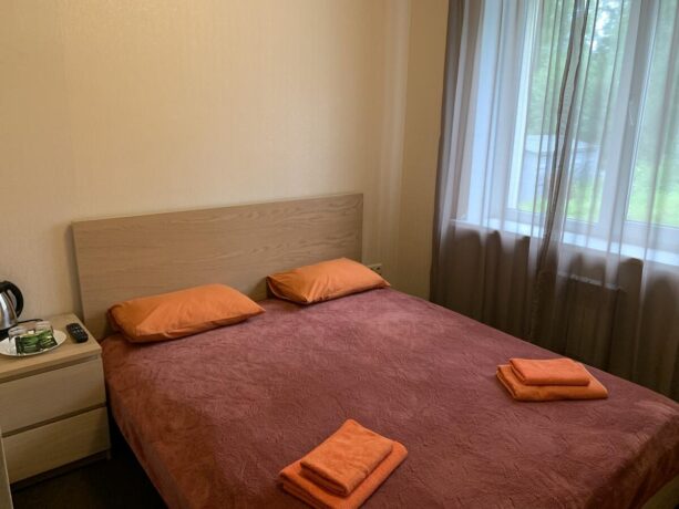 3. Стандарт. Вмещает 2 человек. Это небольшое уютное помещение с двуспальной кроватью, ванной комнатой и необходимыми бытовыми предметами и техникой.