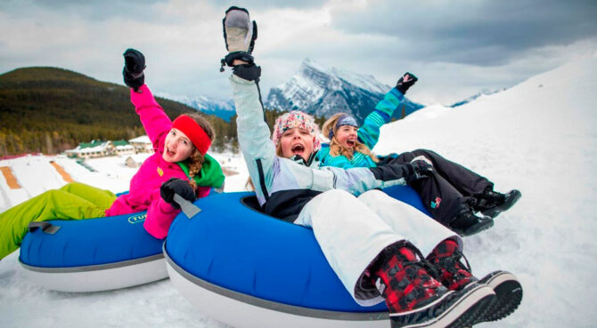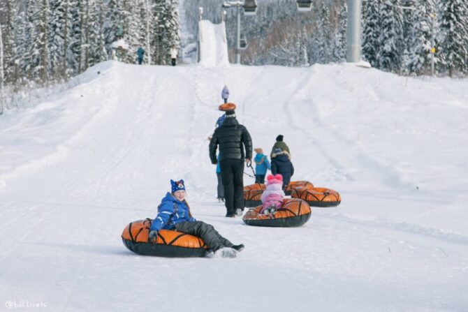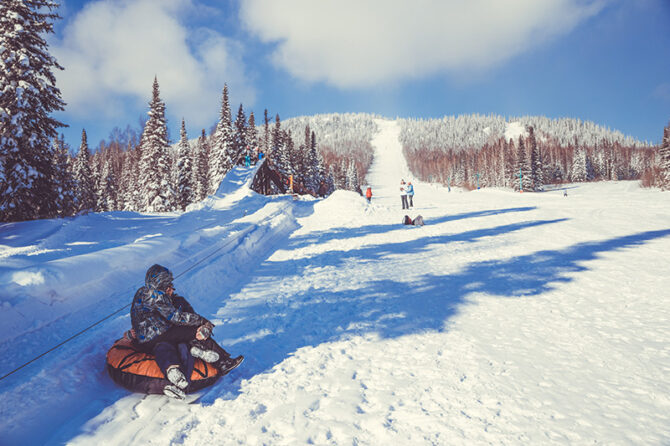 Ещё одно зимнее развлечение — сноутюбинк, или, проще говоря, спуск с горы на ватрушке. В Шерегеше есть несколько специализированных трасс для такого досуга.