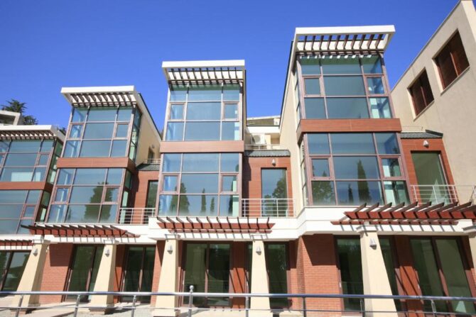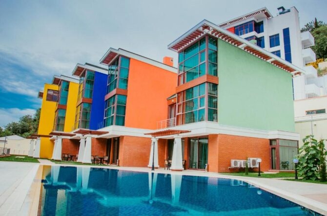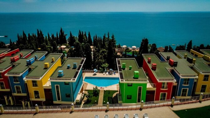 Все виллы имеют три отдельных выхода – на террасу с бассейном, во внутренний дворик или на подземный паркинг. В зависимости от категории коттеджа, он будет располагать тремя или четырьмя спальными. Кроме того у вилл имеется отдельный вход в аквапарк «Миндальная роща». Из окон номеров открывается вид на черноморское побережье, что придаст вашему отдыху еще больших впечатлений и особенности.
