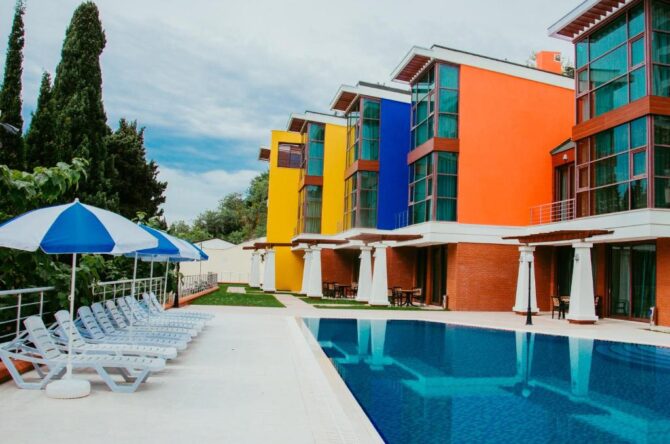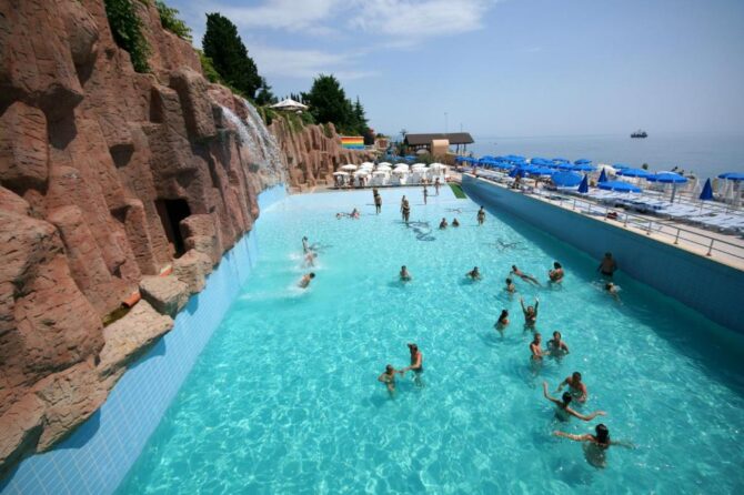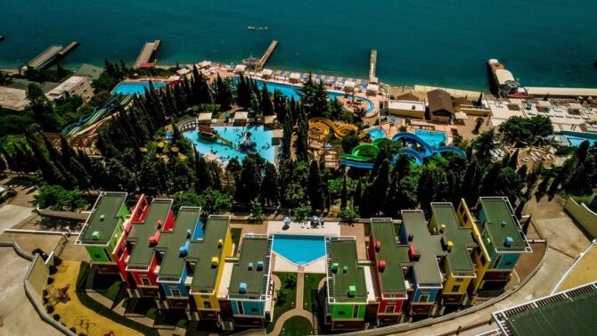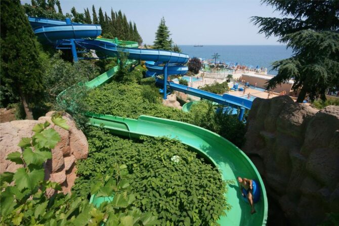 - Аквапарк «Миндальная роща» – находится в шаговой доступности от отеля. Проведенное здесь время пройдет незаметно и подарит вам положительные эмоции благодаря удивительному сочетанию водных горок с окружающим ландшафтом.