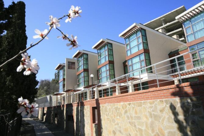 В курортном уголке Крымского полуострова, в красивейшем городе Алушта, расположился один из самых роскошных комплексов вилл региона – «Жасмин». Он входит в состав рекреационного комплекса «Миндальная роща» и отдален от побережья Черного моря всего на 200 метров. Отель «Жасмин» открыт для своих гостей круглый год, что дает возможность отдохнуть в любое удобное время.