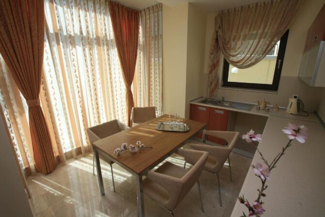 Территория комплекса имеет хорошо развитую инфраструктуру. Для отдыхающих функционирует открытый бассейн – отличная альтернатива, если не хочется идти на пляж. В числе дополнительных удобств тренажерный зал, сауна, массаж. Гости, путешествующие на личном транспорте, могут воспользоваться бесплатной парковкой на территории.