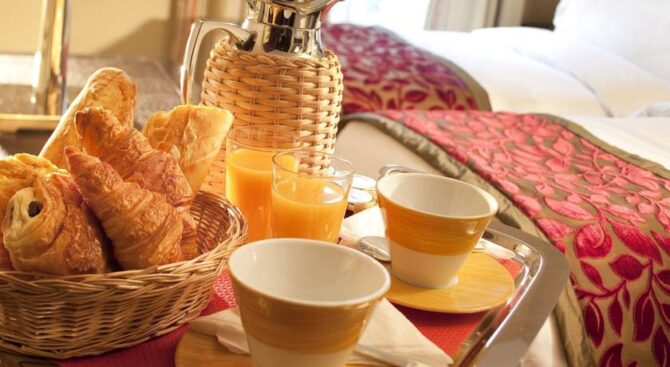 За дополнительную плату (примерно 10-11 €) в отеле можно заказать континентальный завтрак. Если же вы предпочитаете отельному завтраку завтрак в кафе или баре – то рядом с отелем располагается несколько недорогих заведений, предлагают как обычные, так и комплексные завтраки. Каждый номер отеля снабжён чайными и ванными принадлежностями, а также феном и телевизором.