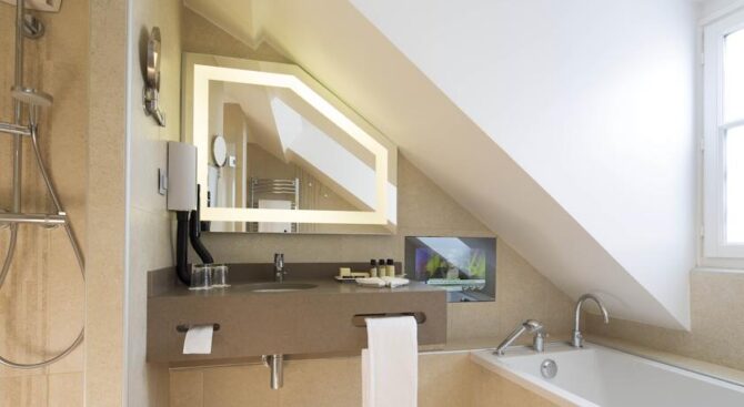 Округ Сен-Жермен-де-Пре прекрасно подходит тем, кто выбрать Париж из-за богатой культурной жизни города. В этом районе находится множество ресторанов, баров и кафе, где можно насладиться как и обычным круассаном с кофе, так и более изысканными блюдами. Отель радует своих посетителей пешей доступностью основных парижских достопримечательностей, а также оптимальным сочетанием уровня комфорта и стоимости проживания.