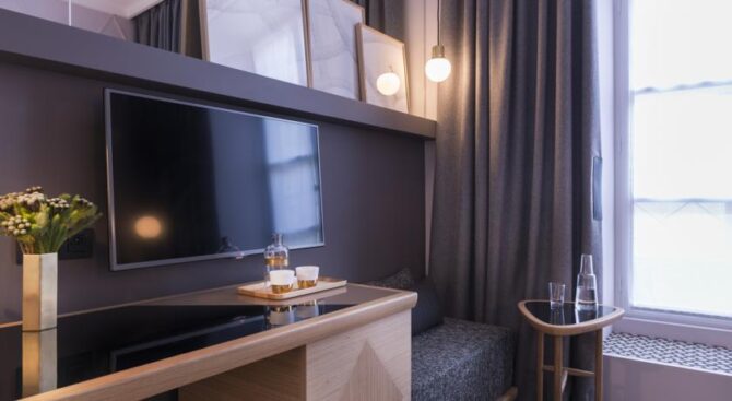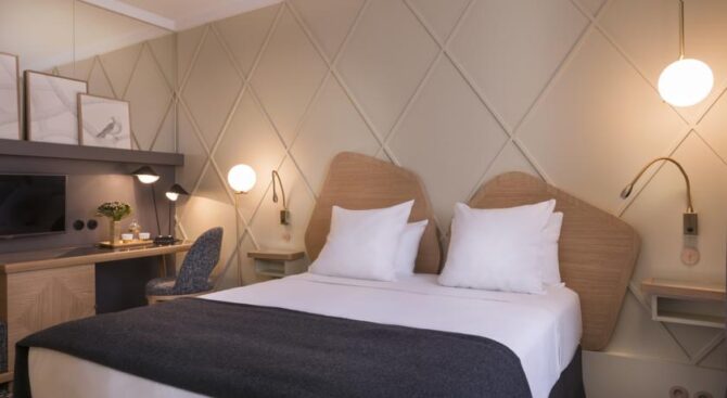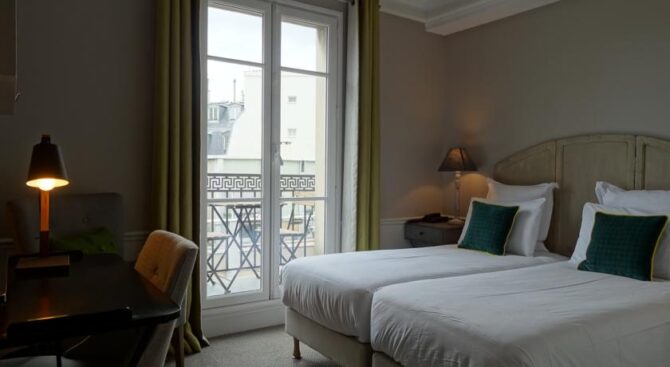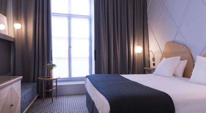 Очень красивый интерьер и спокойное месторасположение отеля. Целый день бродили по достопримечательностям, потом спали как убитые. Персонал общительный, с ними легко найти общий язык, даже если у вас нулевой французский. Атмосфера – ну просто как дома. Из минусов – очень маленькие номера, едва поместились с двумя чемоданами и ребёнком и постоянно толкались пятыми точками. Приедем ли ещё – навряд ли, но только лишь потому, что в Париже полно других великолепных отелей по приемлемым ценам.