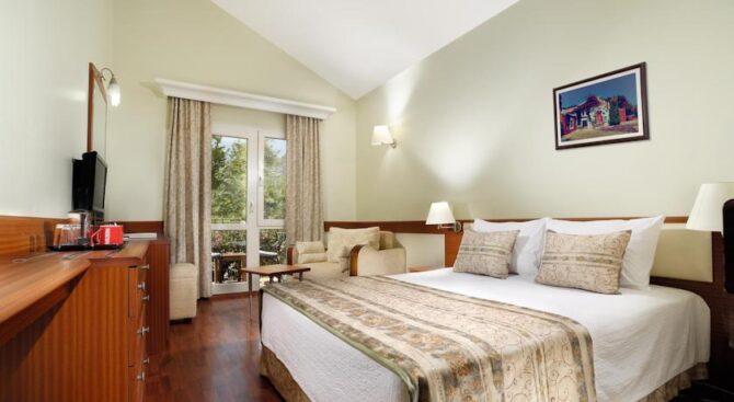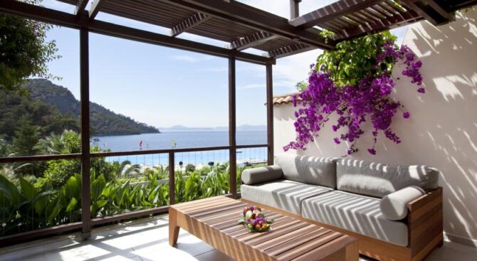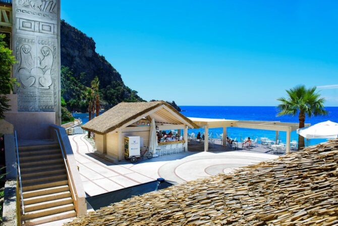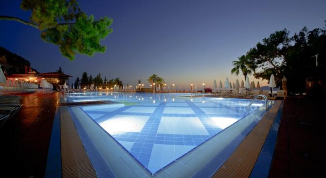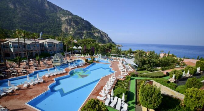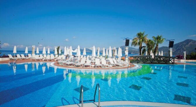 В отеле Garcia Resor t& Spa можно с легкостью почувствовать себя знаменитостью. Отель расположен на холме в паре километров от пляжа Олюдениз, однако, это не мешает гостям добираться до берега, ведь между отелем и пляжем курсирует трансфер.