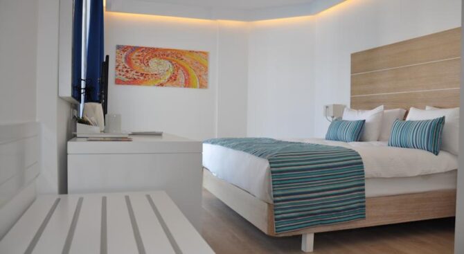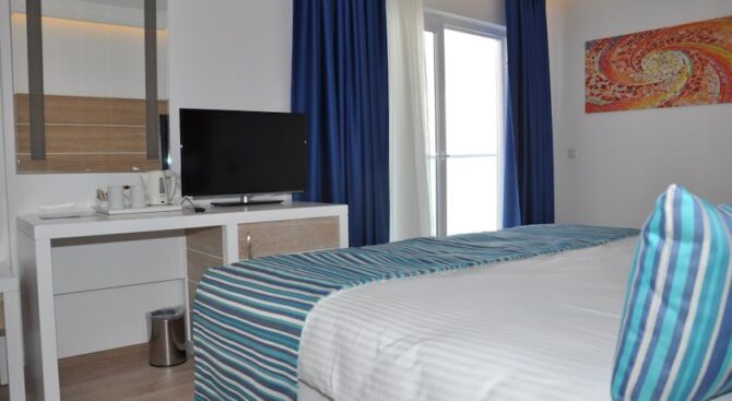 Номера выполнены в современном элегантном стиле. В каждом номере есть телевидение, кондиционер. Номера разделены на спальную и гостиную зоны. Практически из каждого номера открывается потрясающий вид на Средиземное море.