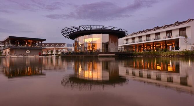 Этот шикарный отель расположился в природной зоне с собственным озером. До пляжа всего 2 минуты ходьбы. В отеле 363 номера, обставленных в стиле «модерн». В каждом из них есть телевидение, кондиционер, сейф и мини-бар. Из некоторых номеров можно сразу пройти к бассейну.
