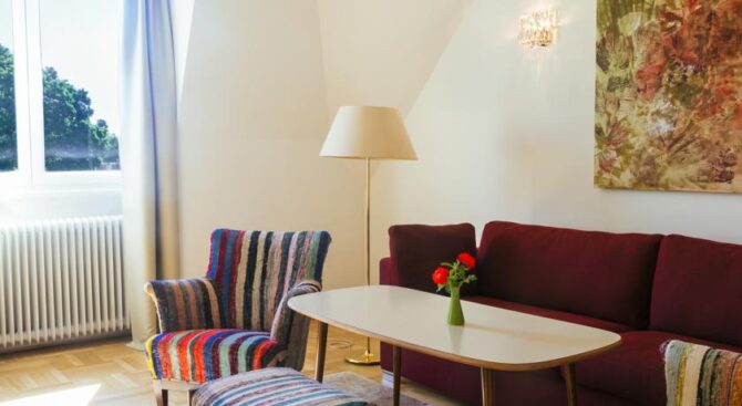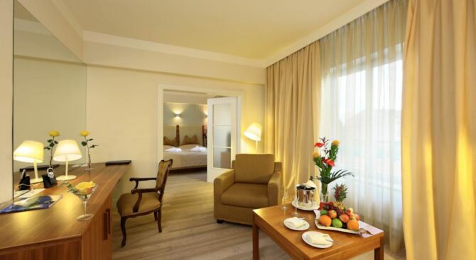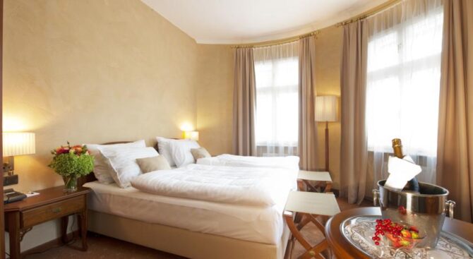 Весь отель, и номера, и общественные помещения, выполнены в стиле арт-нуво. Гости могут заселиться в просторные комнаты, предлагаются семейные номера, небольшие двухместные, номера класса люкс и делюкс, улучшенные номера. В каждом из них есть собственная ванная с необходимыми принадлежностями, халатами, тапочками и феном, есть телевизор с кабельным ТВ и беспроводной интернет с высокой скоростью.
