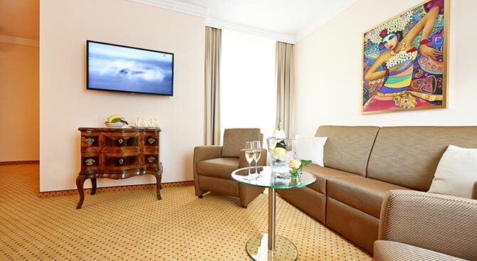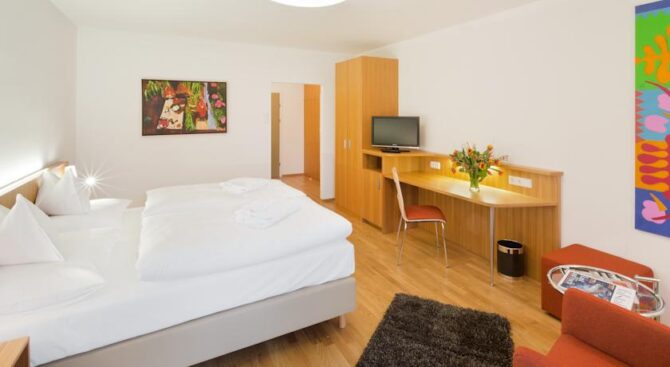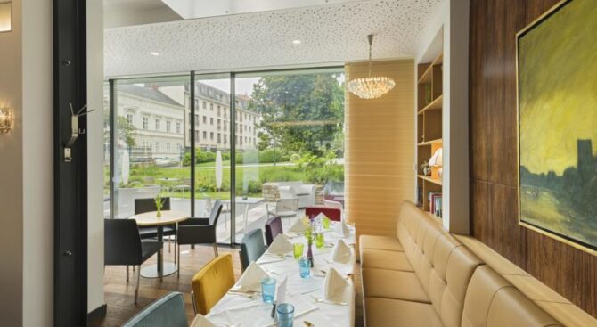 Отель имеет отличное расположение, выходя из помещения, вы сразу попадаете в прогулочную зону Курпарка, в минуте ходьбы расположен Дом искусств, рядом крупнейшее казино города. Здесь есть развлечения на любой вкус, но всего за 5 минут вы сможете добраться до центра Бадена.