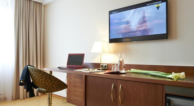 В номерах есть все необходимое для комфортной жизни – новая мебель, телевизор с плоским экраном, просторная ванная комната и мини-бар. Это небольшой уютный отель, где всего 38 номеров. В отеле всегда тихо и спокойно, есть номера для размещения с животными и номера семейного типа.