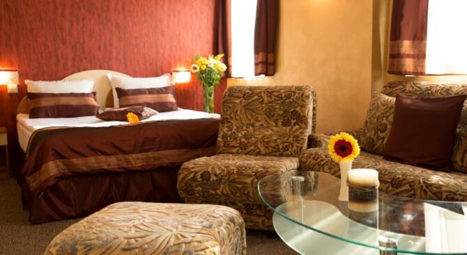 Порадуют вас здесь и номера, выполненные в классическом стиле, который сделает ваше настроение по-настоящему королевским. Особо должно вас порадовать наличие балкона, где можно пить вино с пармезаном и смотреть на всю эту красоту. А в гостином уголке у вас будет возможность принять гостей.