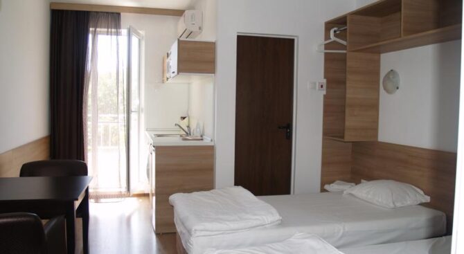 К центру Бургаса от этого отеля, сравнительно недалеко, всего три километра. К торговому центру полкилометра, а до ресторана всего сто метров. В самом же отеле имеется снек-бар, парковка (которой вы можете пользоваться совершенно бесплатно), а также полностью бесплатный доступ к вай-фай.