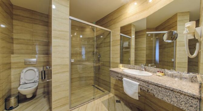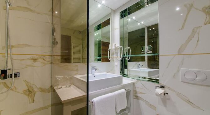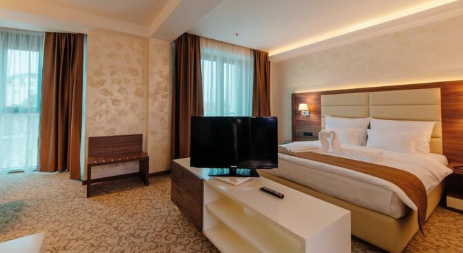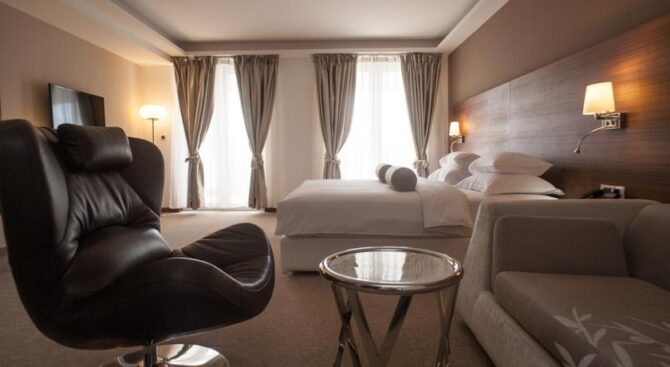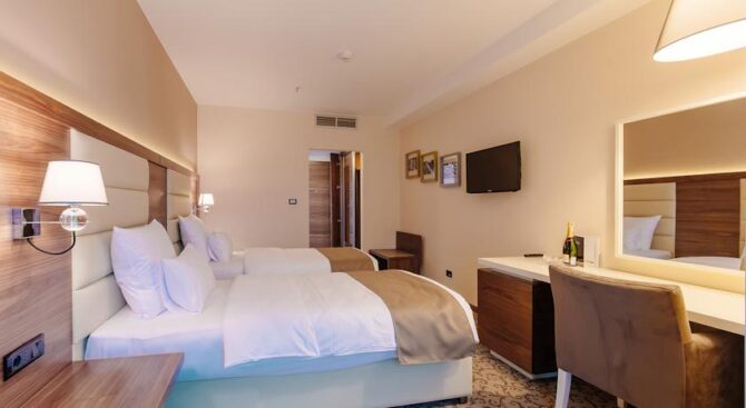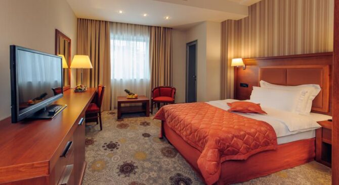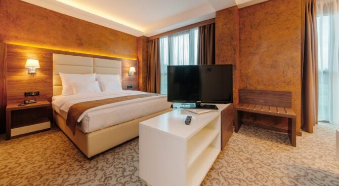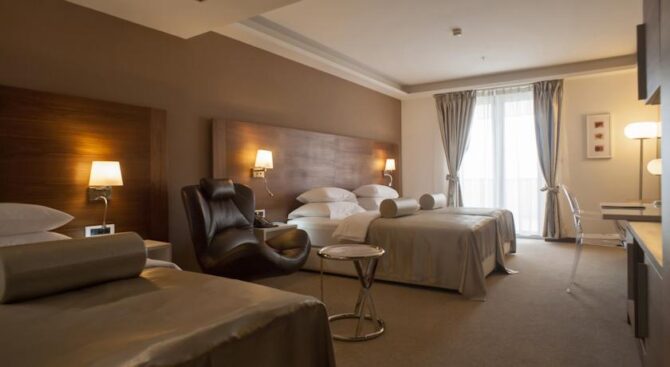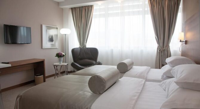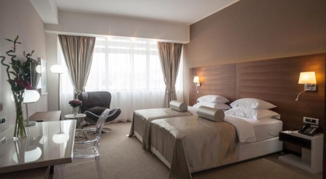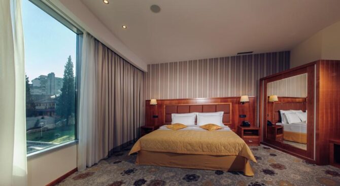 Из отеля можно быстро попасть в торговый центр через специальный переход. Отдыхающие могут самостоятельно осмотреть исторический район Стара Варош или отправиться на побережье. Поездка до пляжей через туннель Созина займет около 45 минут, а до горнолыжного курорта Колашин – не более часа.
