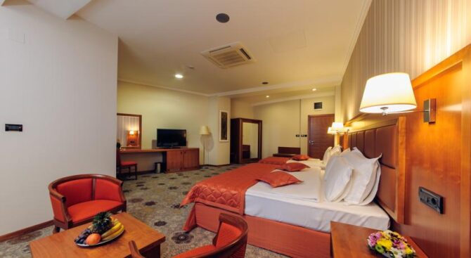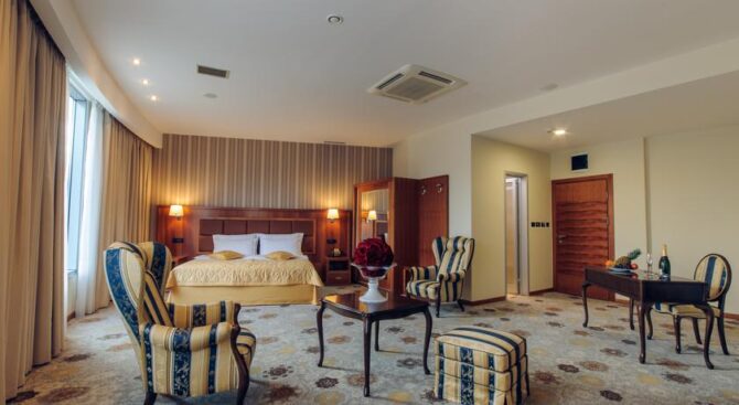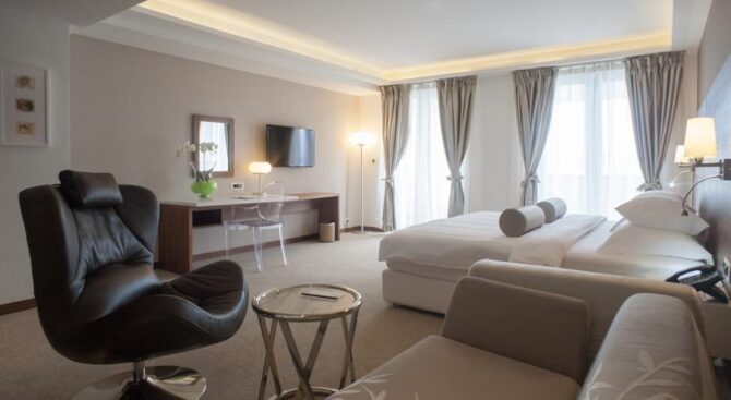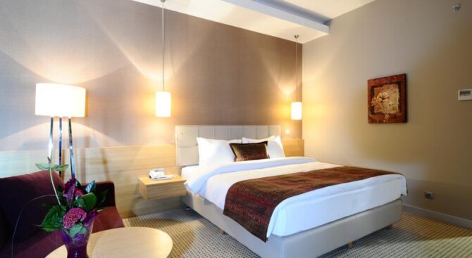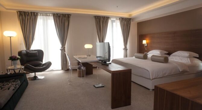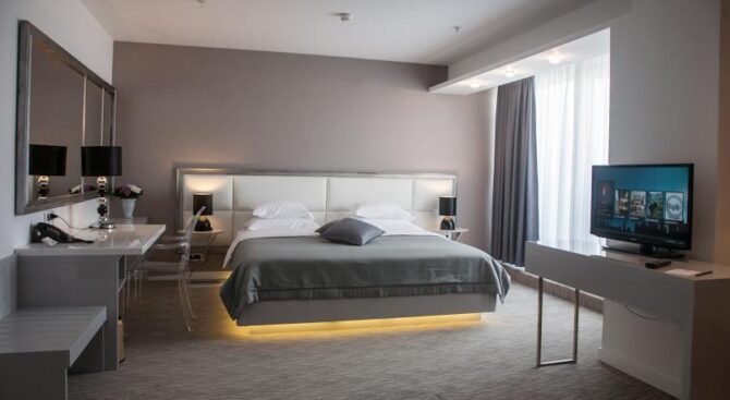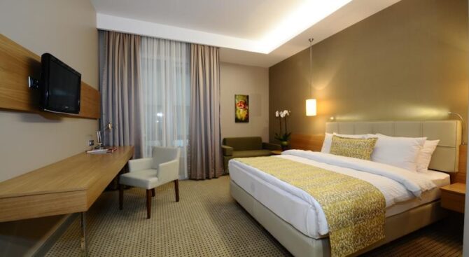 Номера Hotel Ramada Podgorica оформлены в модном современном стиле и имеют выход на балкон. В комнатах все предусмотрено для комфортного отдыха – кровать KING SIZE, мягкая диванная группа в гостиной зоне, чайная зона с принадлежностями для приготовления горячих напитков.