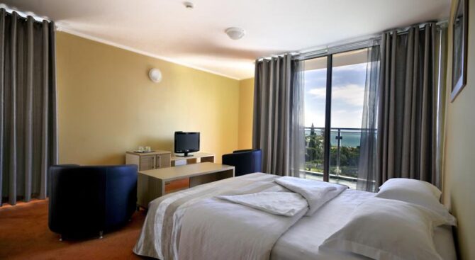 Для отдыхающих предоставляются просторные, элегантно оформленные номера с современной мебелью, спутниковым ТВ и собственным санузлом. В некоторых номерах есть балконы, с которых можно любоваться видом города, расположившись в удобном кресле с чашечкой кофе или бокалом вина.