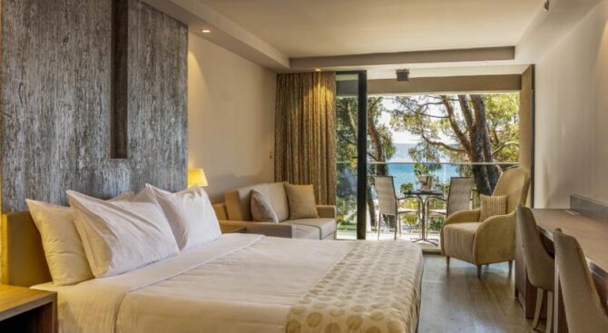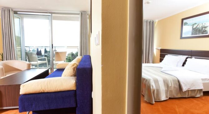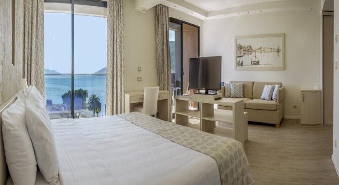 Все номера и апартаменты Palmon Bay Hotel & SPA обставлены удобной современной мебелью. Через панорамные окна от пола до потолка можно выйти на меблированный балкон или террасу, откуда взору откроется потрясающий вид на Бока-Которский залив.