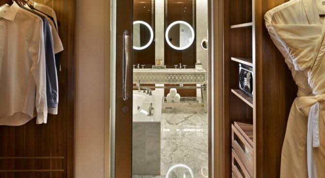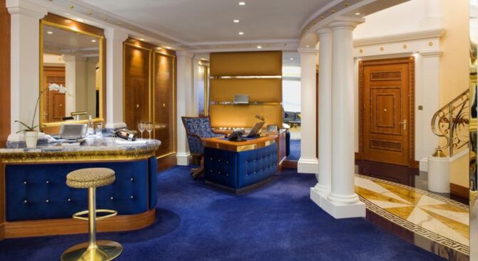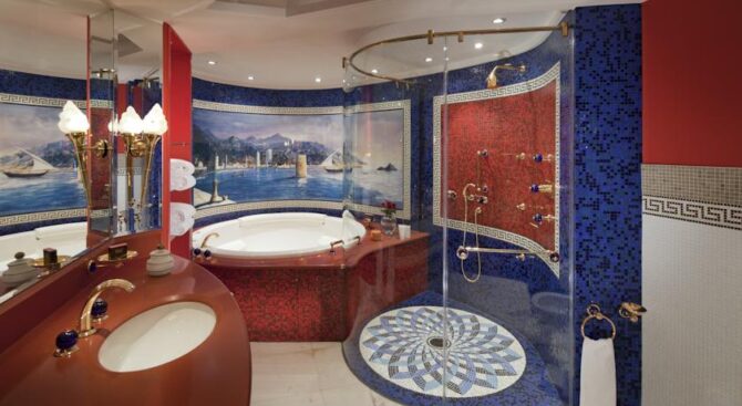 Среди прочих удобств, у постояльцев отеля есть возможность воспользоваться приватным пляжем, имеется собственный театр, поле для гольфа и теннисные корты. Если доплатить, то можно еще и прокатиться на люксовой яхте.