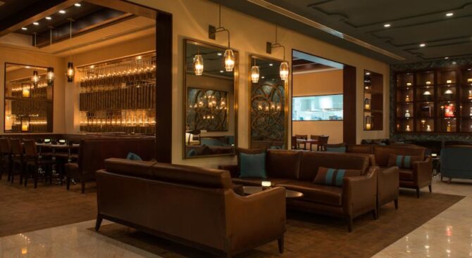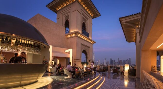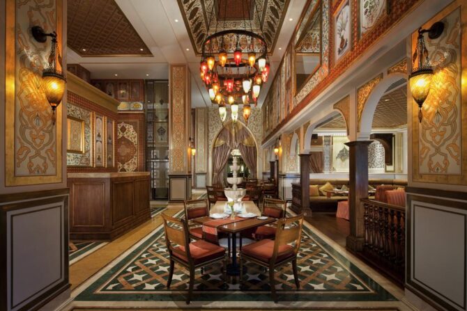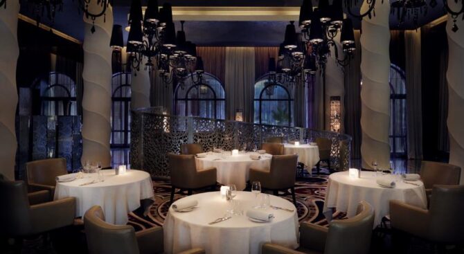 Тем, кто хочет насладиться вкусной едой, предоставляется на выбор 6 баров и ресторанов. Заведение под названием Mezzerie накормит блюдами национальной арабской кухни, ресторан LAO позволит ощутить вкус Азии, а отведать пищу, которая готовится под руководством мишленовского шеф-повара Хайнца Бека позволит посещение ресторана Social. PalmAvenue угостит своих гостей блюдами и коктейлями, которые относятся к интернациональной кухне, а бар Serafina предоставит свои фирменные коктейли и порадует постояльцев этого отеля в Дубае живыми выступлениями.