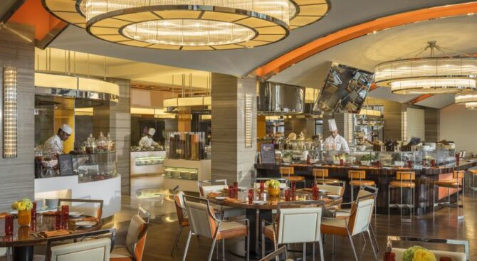 На территории комплекса находится около 50 ресторанов, лаундж-зон и баров, в которых каждый найдет возможность удовлетворить свой гастрономический вкус. Колоссальный выбор блюд различных кухонь и стилей – вот что предлагают местные рестораны. Согласно отзывам, этот отель отлично подойдет любителям лакшери отдыха, которые приехали ради вкусной еды и частых пляжей.