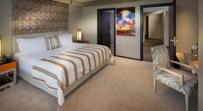 Каждый из номеров отеля оформлен в модерновом стиле с вкраплениями арабских мотивов. В номерах класса люкс есть большие плазменные телевизоры и оборудованная зона для обеда. В комнате для гигиенических процедур в наличии: тропический душ, большое зеркало, широкая стильная ванна и светильники из муранского стекла. При желании постояльцы могут получить Xbox или PS.