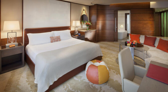 В каждом из номеров есть уникальные планшеты iPad с золотым покрытием (около 4 карат), новейшие «интерактивные» телевизоры и медиа-центр. Гости отеля отмечают красоту и интерьер местного бара под названием Sky View, он находится на возвышении (почти двести метров).