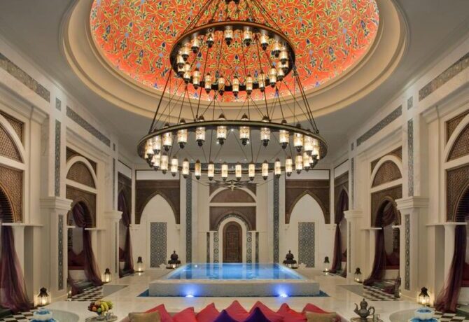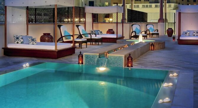 Курортный отель Jumeirah Dar Al Masyaf отличается выгодным расположением. Он находится в своего рода тихом саду, который окружен неимоверным количеством бассейнов и каналов. Фактически, этот отель представляет собой ряд отдаленных друг от друга уникальных вилл с чистыми, изысканными номерами и интерьером. Остановившись здесь, вы прочувствуете настоящую «арабскую роскошь».