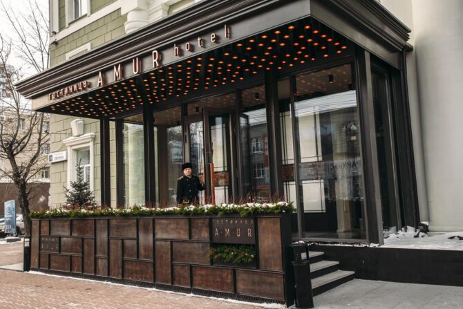 Старейшая гостиница города расположена в самом его центре. Ее интерьеры и сервис – это сочетание исторически сложившихся традиций и современных технологий в области гостеприимства. В 2017 году отель получил статус 4 звезды. В фонде стандартные номера и номера повышенной категории. Питание организует ресторан «Амур». Гостям предлагается общий завтрак, а также блюда русской, европейской и авторской кухни. К услугам постояльцев «СПА-Амур» с турецкой баней и финской сауной. На первом этаже расположен спортзал с новыми тренажерами. Он работает ежедневно с 6 утра до 23.00. Посещение бесплатное. Для передвижения по городу и до аэропорта предоставляется платный трансфер, работает прокат автомобилей.