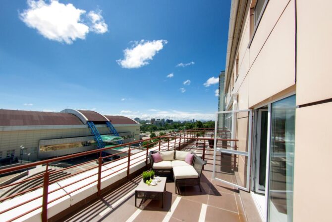 В 15 км от аэропорта, в черте города расположен 4-звездочный отель VERBA. В номерном фонде найдется номер любой ценовой категории. Кафе готовит блюда русской и европейской кухни, утром накрывает шведский стол для завтрака. СПА-салон предлагает процедуры для релаксации, турецкую, финскую и русскую бани, гидромассажную ванну. Тренажерный зал небольшой – установлен многофункциональный тренажер со встроенными и свободными весами, гантелями и штангами, беговой дорожкой, а также инвентарем для йоги и гимнастики. В шаговой доступности от отеля расположился парк культуры и отдыха, набережная реки Амур, краеведческий и художественный музеи, театр юного зрителя, торговые центры и развлекательные заведения на любой вкус. Можно приезжать с животными. Трансфер платный.