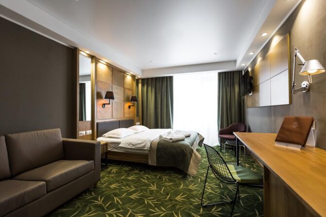 В 2-х км от аэропорта находится гостиничный комплекс Pilot. В его номерном фонде: семейные номера, шикарный люкс для новобрачных, джуниор сюит, комфорт, дабл и стандарт твин. Работает бар, готовится к открытию просторный обеденный зал ресторана. Завтрак подается в традиционном континентальном варианте. В банном комплексе 7 залов: турецкий, римский, восточный, японский, тайский, королевский и русский на дровах с дубовыми вениками. После парной можно окунуться в бассейн с прохладной водой, принять контрастный душ, отдохнуть в отдельной комнате. Посещение платное. Владельцы отеля регулярно проводят акции и устанавливают скидки на проживание и услуги отеля. Например, на заселение после 22.00 действует скидка 20%. Именинников ждут особые подарки от администрации. Есть трансфер от/до аэропорта. Здесь принимают с домашними питомцами.