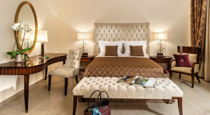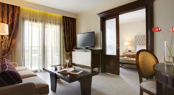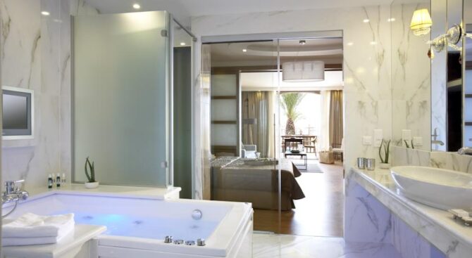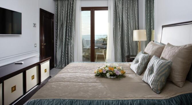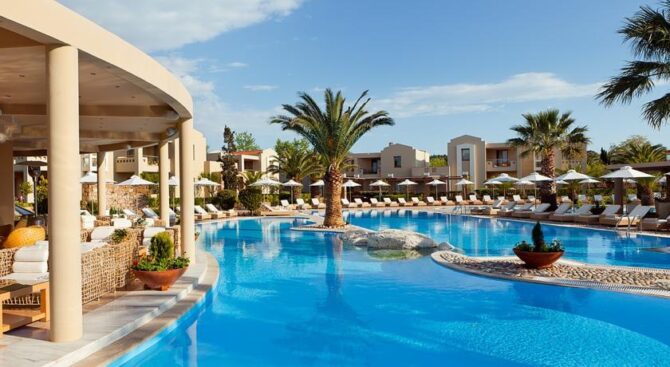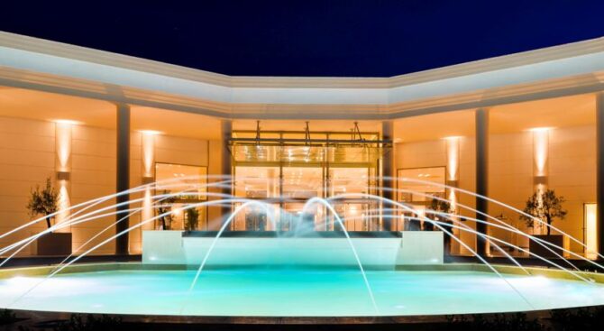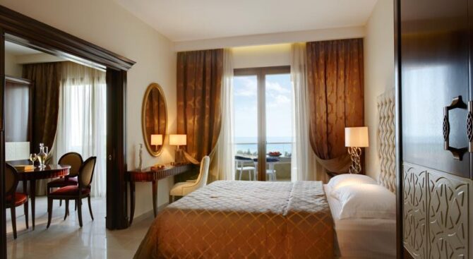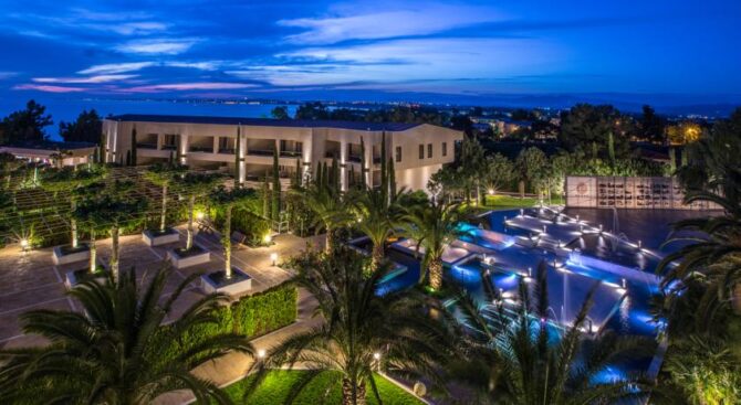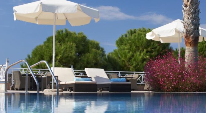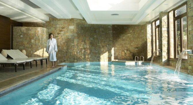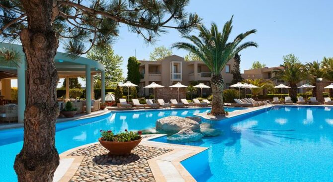 Отель Pomegranate Wellness Spa Hotel в Халкидики считается одним из лучших пятизвездочных гостиниц на полуострове. Это крупный СПА-отель, где гости могут расслабиться просторном СПА-центре, посетить фитнес-зал, поплавать в бассейне и сходить на массаж.