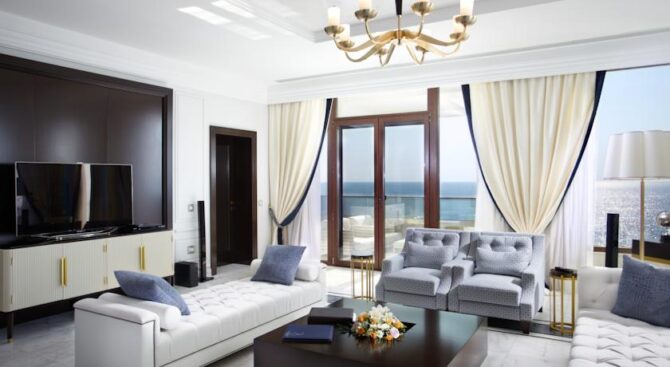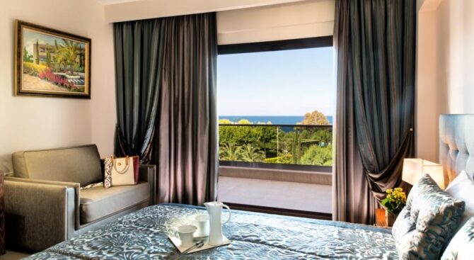 Все номера отеля отличаются особым изяществом, из окон открывается вид на море. В номере есть мини-бар, кондиционер, современная ванная с необходимыми принадлежностями, высокоскоростной интернет, спутниковое ТВ. В отеле представлены номера стандартного класса, класса полулюкс, семейные номера и люксы.