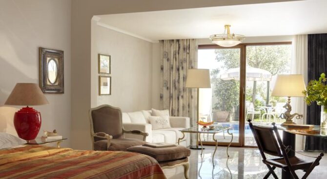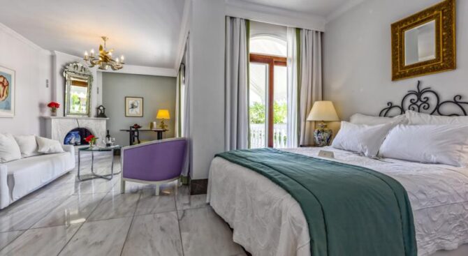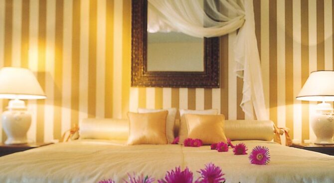 В отеле есть две категории номеров – люксы и полулюксы. Все они обставлены элегантной мебелью ручной работы, интерьер выполнен в светлых тонах. В номерах есть мини-бар, сейф, кондиционер, телевизор, собственная ванная комната с банными, туалетными принадлежностями и феном.