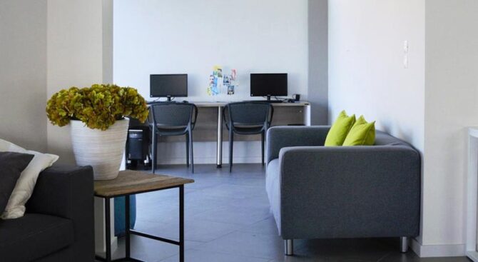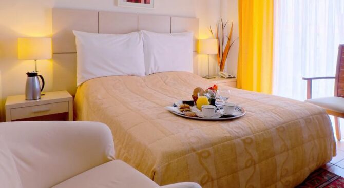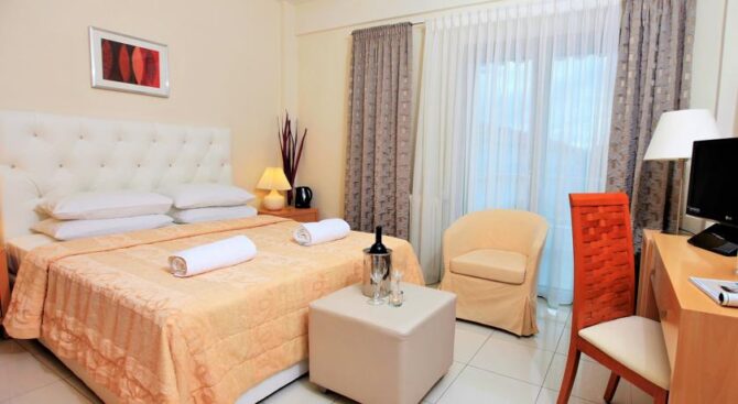 Все номера отделаны в современном стиле, с особым вкусом. Есть кондиционер, ванная с мраморным полом, фен, косметические принадлежности. В номере удобные кровати, необходимая мебель и телевизор. В большинстве комнат есть также балкон с видом на море или гору Олимп.
