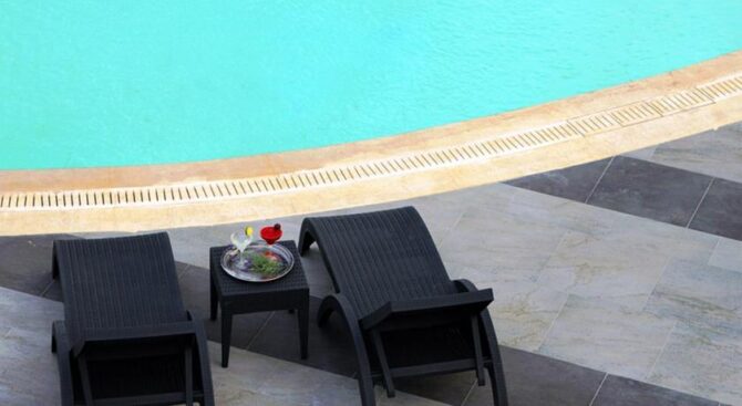Возле бассейна и пляжа есть бары, где можно заказывать любимые напитки. Зоны отдыха оборудованы бесплатными зонтиками и шезлонгами в достаточном количестве. Есть волейбольная площадка. На территории отеля работает СПА-центр, где можно заказать массаж, любые косметические процедуры, а также посетить гидромассажную ванну и паровую баню. В ресторане формируется завтрак и ужин по системе шведского стола. Подаются разнообразные блюда интернациональной и местной кухни.