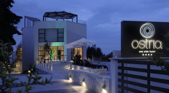 Прямо на берегу Эгейского моря расположен отель Ostria Sea Side Hotel в Греции, на Халкидики. Он расположен в десяти метрах от оборудованного песчаного пляжа Ханиоти. Рядом отелем есть магазины с продуктами и одеждой, а расстояние до центра старинной деревни составляет 100 метров.