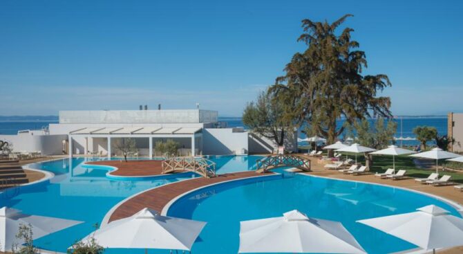 В тихой греческой деревне Сани расположен курортный комплекс Porto Sani в Халкидики. До пляжа можно дойти всего за 3 минуты, к услугам постояльцев также предоставлены СПА-салон, фитнес-центр и оборудованные номера. На территории комплекса есть открытый бассейн в стиле лагуны.