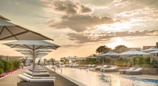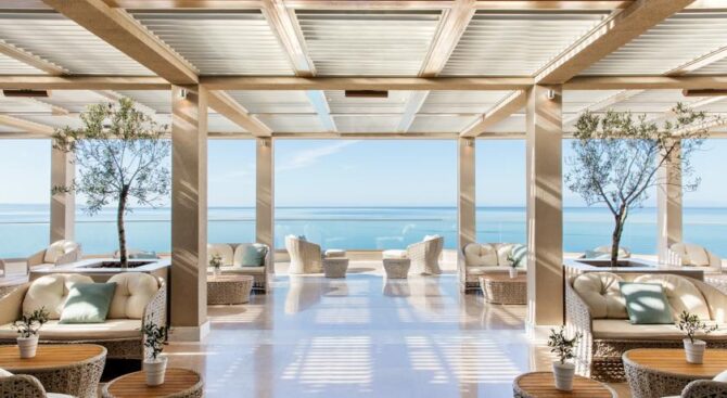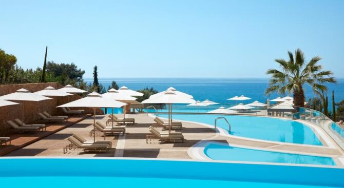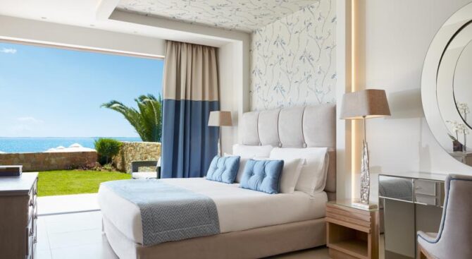 На берегу частного залива Греции расположен крупный курортный отель Ikos Oceania в Халкидики. На территории есть просторный бассейн, а до пляжа можно дойти всего за 3 минуты. Почти из каждого номера открывается роскошный вид на море и горы, на частном пляже гостиницы гости могут воспользоваться шезлонгами и получить бесплатные напитки в баре.