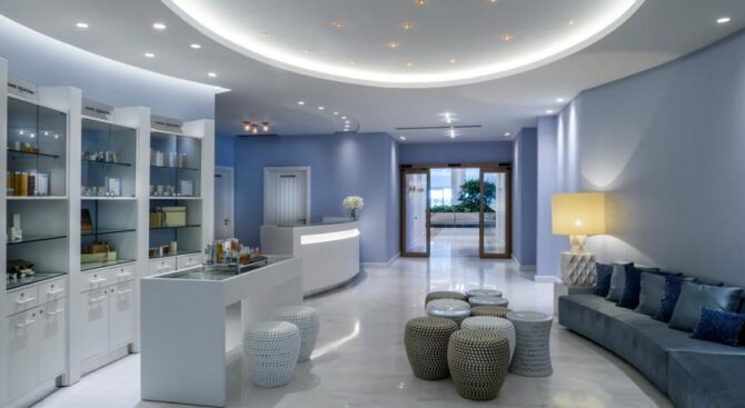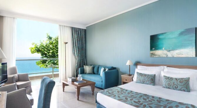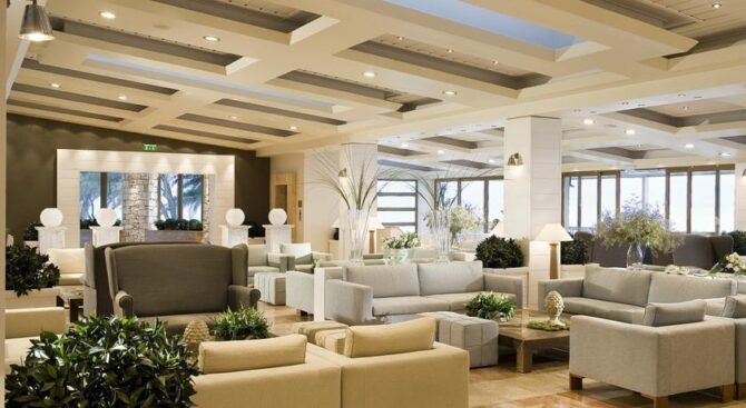 Отдельно, для постояльцев, работает СПА-салон с крытым бассейном с подогревом, закрытыми кабинками для косметических процедур и массажа. Постояльцы могут посещать фитнес-зал, оборудованный новыми тренажерами. На территории гостиницы есть несколько ресторанов и баров, где подают блюда греческой и другой кухни по системе «шведский стол». Из всех баров открывается вид на море.