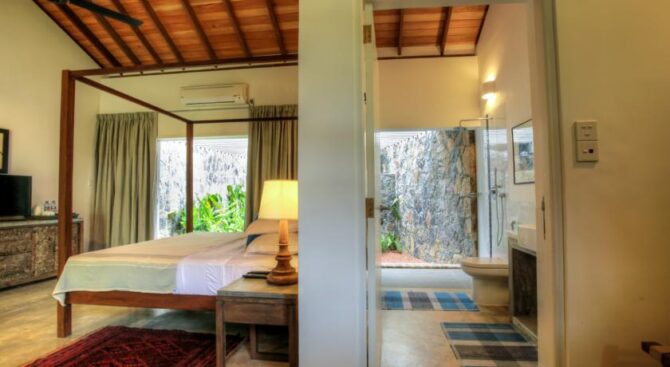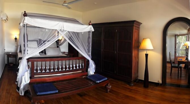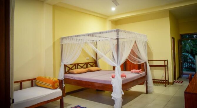 Ищите отель, где можно отдохнуть не только телом, но и душей? Тогда к вашему вниманию Hotel Suite Lanka, который славится своими номерами, выполненными в цейлонском стиле и близкой расположенностью к пляжу (идти пешком всего 8 минут). В номере имеется вентилятор или кондиционер, деревянная мебель, замечательный вид на Индийский океан, ванные комнаты, а также гостиные зоны.