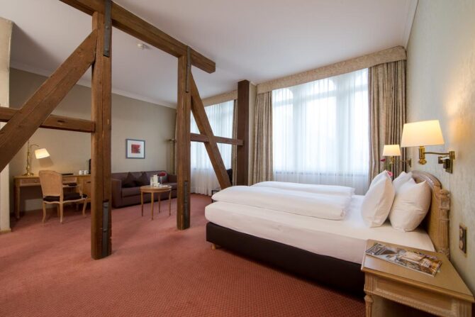 4-звездочный отель расположен в старинном здании постройки 14 века. Помещения были полностью отреставрированы и реконструированы под нужды современных туристов. Для расселения представлен широкий выбор – от одно до четырехместных номеров. Это центр города недалеко от Японских садов. Ресторан Taverne утром накрывает завтрак, а в обед и вечером подает блюда интернациональной кухни. Лаундж-зона с баром Kloster открыта каждый день, кроме воскресенья.