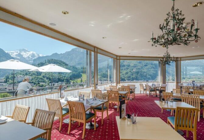 5-звездочный отель расположен между двумя озерами. Из окон открывается вид на заснеженные вершины Юнгфрау. Все номера оформлены в индивидуальном стиле. Дизайнеры предложили массу вариантов на любой вкус: от классического минимализма до роскошного арт-деко. Кондиционеры установлены только в клубных номерах. Ресторан La Terrasse отмечен 16 баллами по системе Го Мийо. Пиццерия Sapori предлагает широкий выбор блюд итальянской кухни. Утром сервируется континентальный завтрак. К услугам гостей – эксклюзивный спа-центр Victoria Jungfrau. Он занимает площадь 5500 кв.м. В нем оборудованы сауна, паровая баня, тренажерный зал, большой бассейн. Еще один спа-центр NESCENS рассчитан на уединенный отдых. В нем предусмотрена небольшая зона для спа-процедур, бар и доставка еды.
