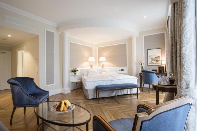 4-звездочный отель представляет гостиничную сеть Mgallery. Здание было построено в 1908 году. Оформление вестибюля, номеров, ресторана, бального зала выдержано в стиле ар-нуво. Завтрак входит в стоимость проживания. Ресторан Verandah готовит блюда интернациональной кухни, работает по меню. В свободное время гости могут посетить оздоровительный центр с турецкой баней, двумя саунами, гидромассажной ванной, велнесс-процедурами. Возле входа останавливается лыжный автобус. Его маршрут проходит через три горнолыжных региона.