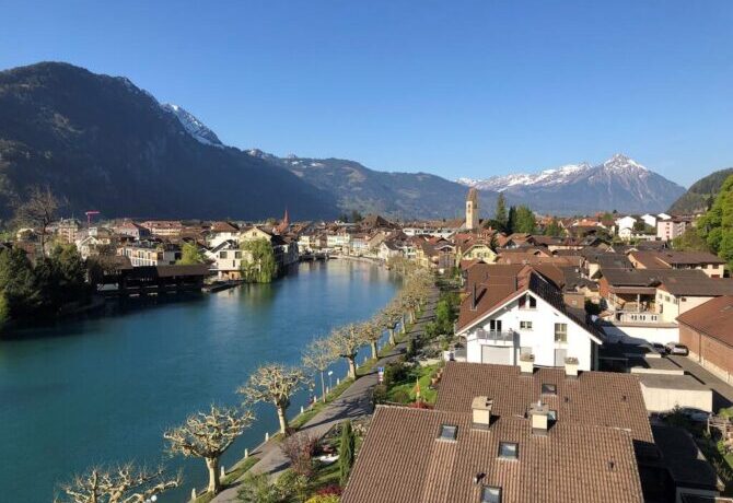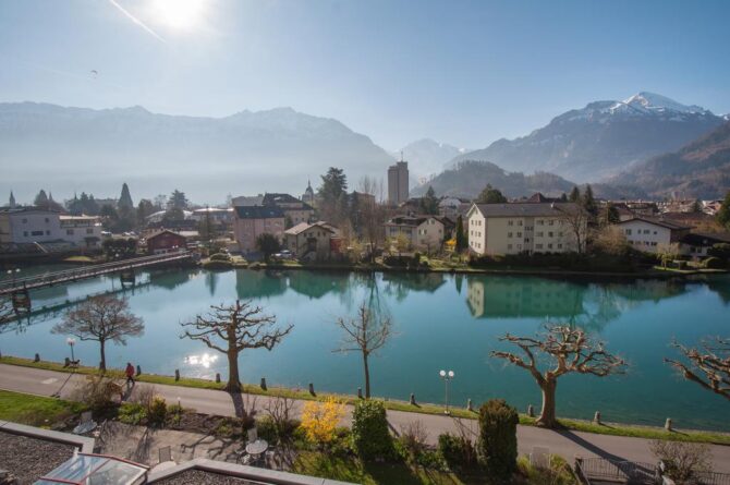 Окружной центр Интерлакен находится в кантоне Берн. Свое название коммуна получила в наследство от католического монастыря, основанного в этих краях еще в 1130 году. Сегодня это туристическая столица региона. В течение года туристов принимают отели города, рестораны, бюро по организации экскурсионных туров. Удачное расположение между озерами Thun и Brienz, заснеженными горными вершинами позволило Интерлакену получить статус курорта еще 300 лет назад.