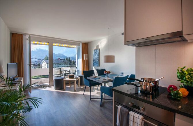Трехзвездочные апартаменты расположены в тихом районе коммуны на берегу реки Ааре. Для размещения предоставляются апартаменты класса стандарт, лофт, супериор, романтик, семейные, зимние инклюзивные со ски-пассами и полулюксы с кухней. На территории есть бесплатная парковка. Завтрак.
