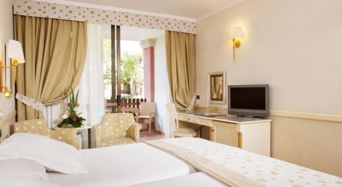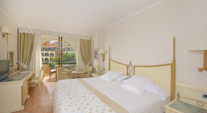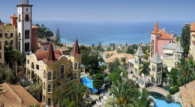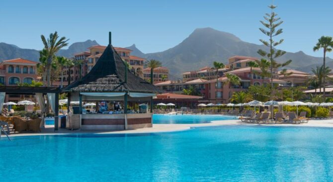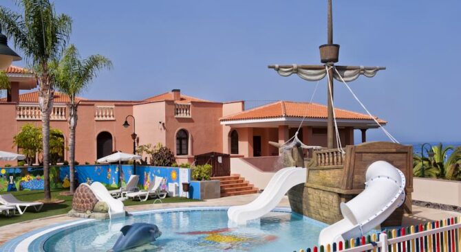 Этот шикарный комплекс для отдыха в Испании находится в окружении цветущих садов. Гости отеля, приезжающие сюда с детьми, могут воспользоваться услугами фитнес-центра, а также искупаться в одном из пяти бассейнов.
