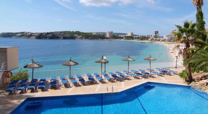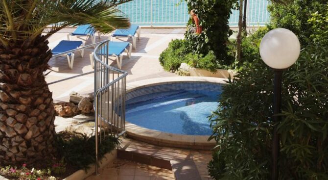 Этот комплекс для отдыха располагается на вершине холма, с которого туристам открываются живописные красоты бухты Магаллуф. Гости могут воспользоваться лифтом, доставляющим людей к пляжу, услугами спа-салона или искупаться в теплом бассейне.