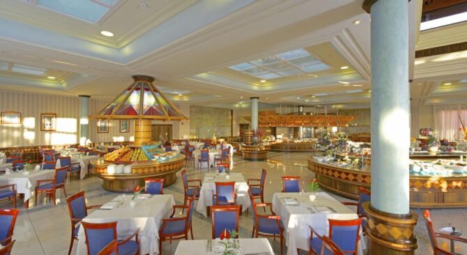 Рестораны Poseidon и Zeus предлагают посетителям отведать вкусную еду. Есть здесь блюда, которые созданы специально для детей. Заведение Portofino угощает постояльцев изысканной едой, созданной в лучших традициях итальянской кухни. Возле бассейна работают 2 бара, в которых подают напитки, приготовленные по фирменным рецептам.