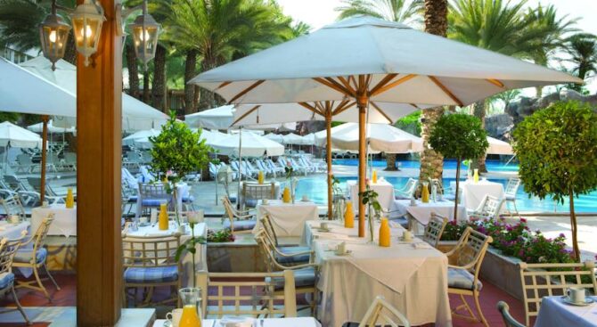 У отеля Herods Palace Hotels & Spa Eilat предусмотрены СПА и другие оздоровительные процедуры. Есть бассейн и своя автостоянка, которой можно воспользоваться бесплатно, это же касается и беспроводной сети Wi-Fi. В ресторане и баре отеля можно заказать блюда израильской кухни и не только, а также прохладительные напитки, все это прямо около бассейна.
