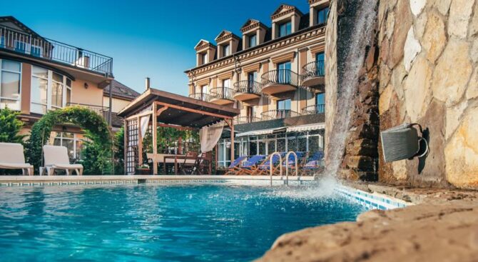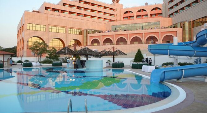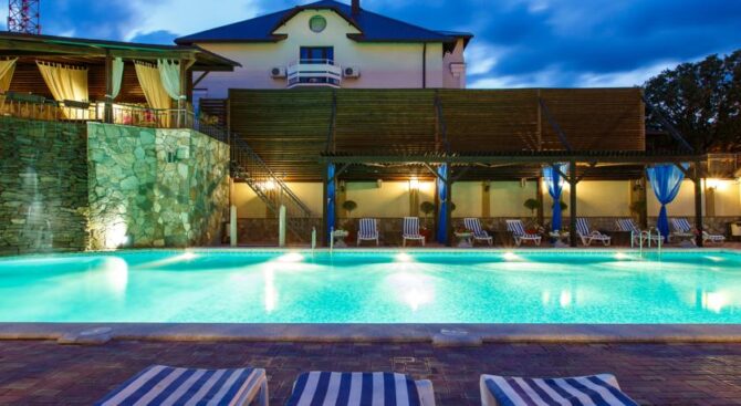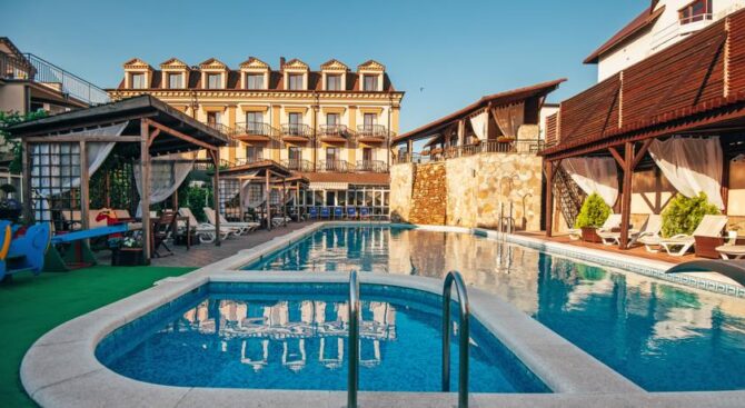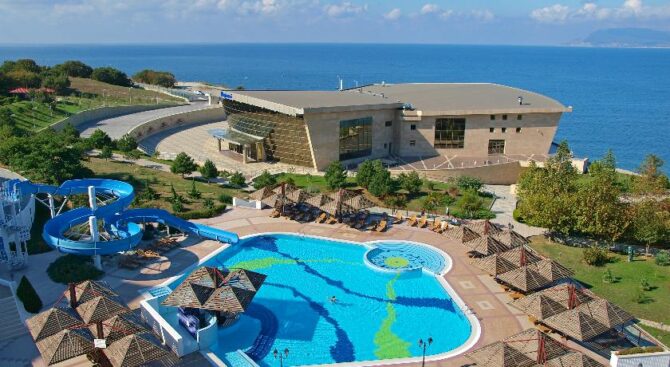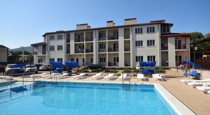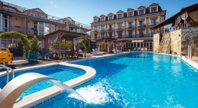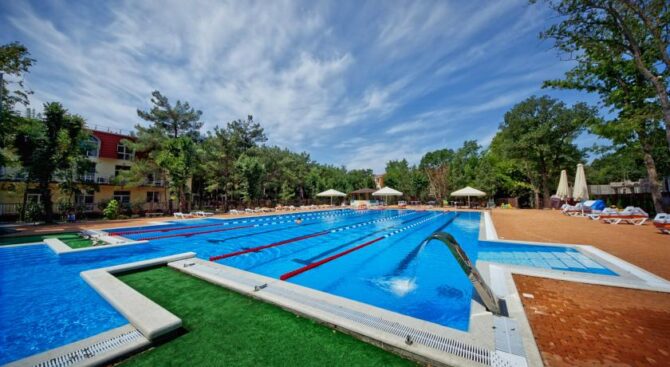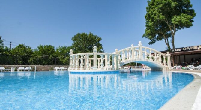 Если одного Черного моря вам недостаточно, тогда пожалуйте в Курортный комплекс Надежда. Он располагается всего в трех минутах ходьбы от пляжей морских, и имеет собственный частный пляж. На обширной территории также находится несколько бассейнов с крышей или без нее.